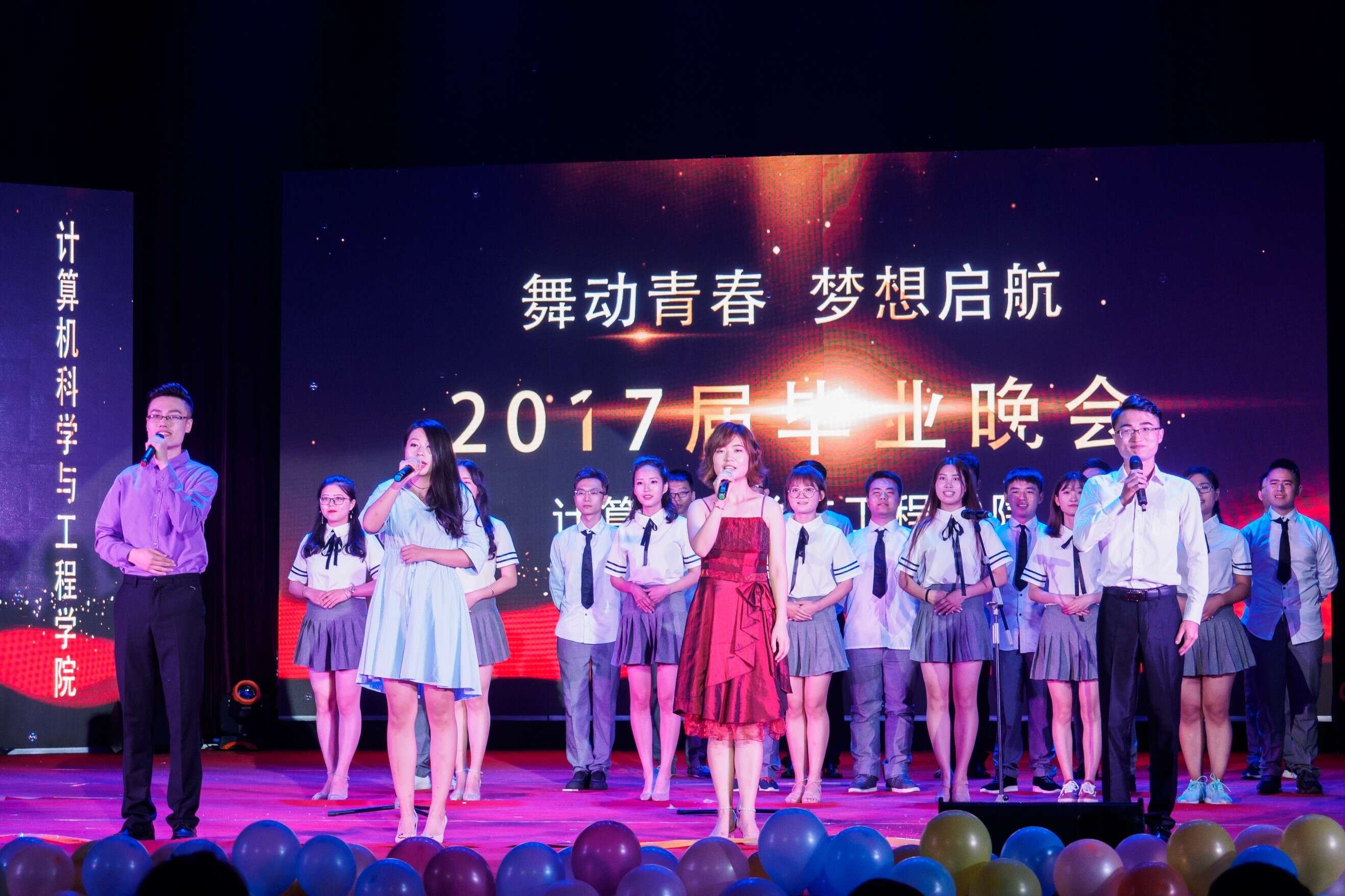 这场盛大的晚会,展现了计算机学院师生们的别样风采和属于IT人的激情。同时表达了学院对2017届全体毕业生的美好祝愿,愿所有毕业生们离别母校踏入社会这个更广阔的天地后能够前程似锦,大展宏图。