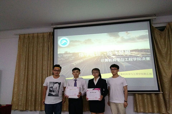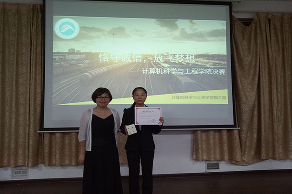比赛中,参赛选手就诚信问题各抒己见,演讲风格各具特色,突出诚信主题,使同学们对诚信问题有了更深的认识。最终,李雄娟同学斩获一等奖,王真、王啸飞两位同学获二等奖,杨杰宇,廖智勇,李聪三位同学获得三等奖,袁枭淘,李明,张子晗,熊灵灵四位同学得优胜奖。