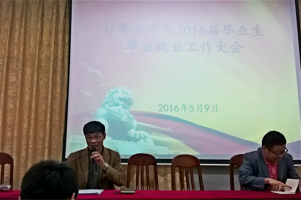 5月9日上午,tapplay官网2016届毕业生安全教育暨就业工作大会在逸夫楼108顺利召开。院党委副书记曾治国、学工办主任吴成义、年级辅导员易靓靓老师出席了本次会议。12级全体在校学生参加了本次大会。