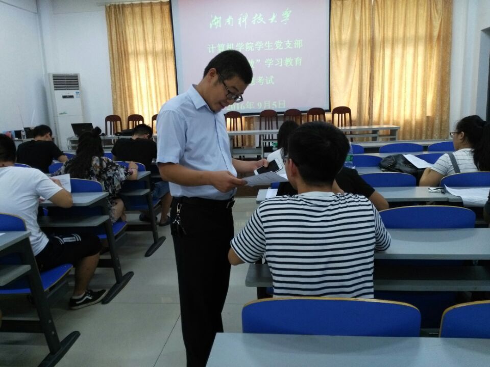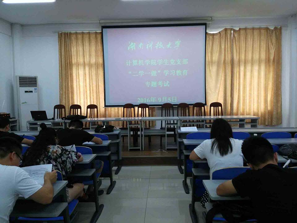 为深入扎实开展“两学一做”学习教育活动,检验广大党员的学习教育成效,9月5日中午12:30,计算机学院学生党支部“两学一做”学习教育专题考试在逸夫楼108顺利拉开帷幕。