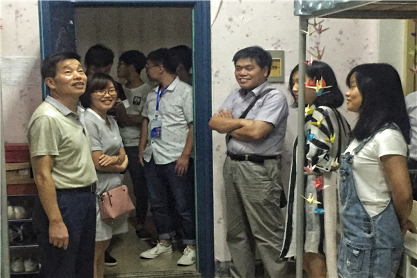 新学期伊始,为进一步了解同学们的返校情况、宿舍生活情况,tapplay官网院长徐建波,院党委书记万启常,副院长廖俊国、张会福、唐明董、胡勇华,院党委副书记曾治国,学工办主任吴成义、各年级辅导员老师在学生干部的陪同下走访了tapplay官网全体学生寝室。