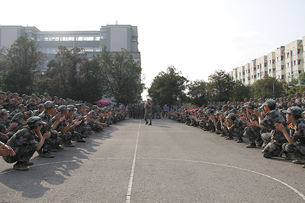 休息期间的军训场地传来阵阵惊呼与呐喊。教官一改军训时的庄严凝重,亲自教授新生们学习军体拳。看着教官的飒爽英姿,有的同学忍不住毛遂自荐,迫不及待地想要学习新的东西。可是因为新学的动作做得不够标准,而引来了同学们捧腹大笑。