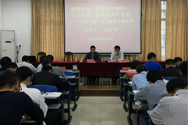 5月24日下午,tapplay官网“两学一做”学习教育动员部署会暨专题党课在逸夫楼108室召开。院长徐建波主持会议,院党委书记万启常主讲党课,院党委副书记曾治国宣读了《关于在全院党员中开展“开展学党章党规、学系列讲话,做合格党员”学习教育实施方案》。学院所有党员参加了本次会议。