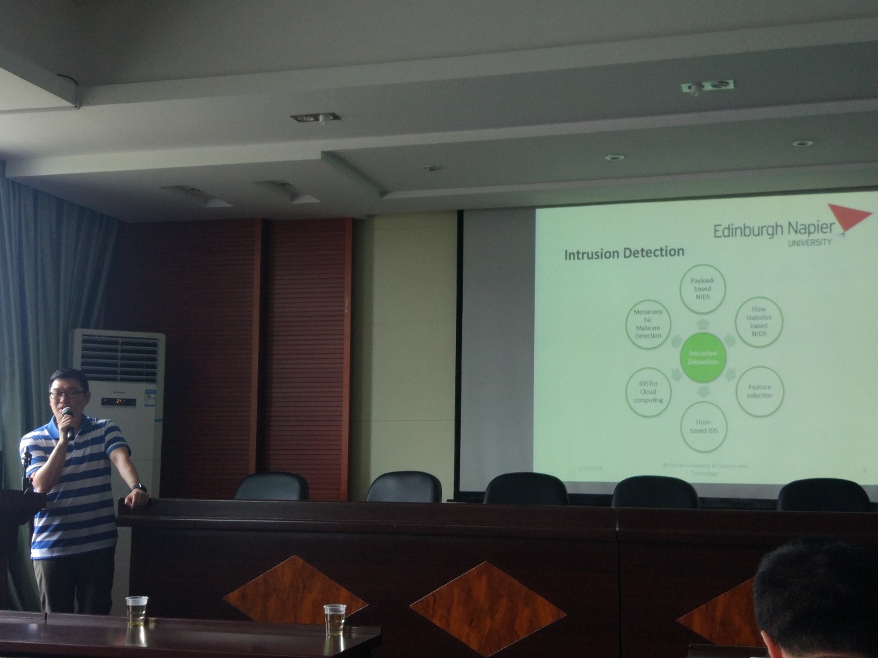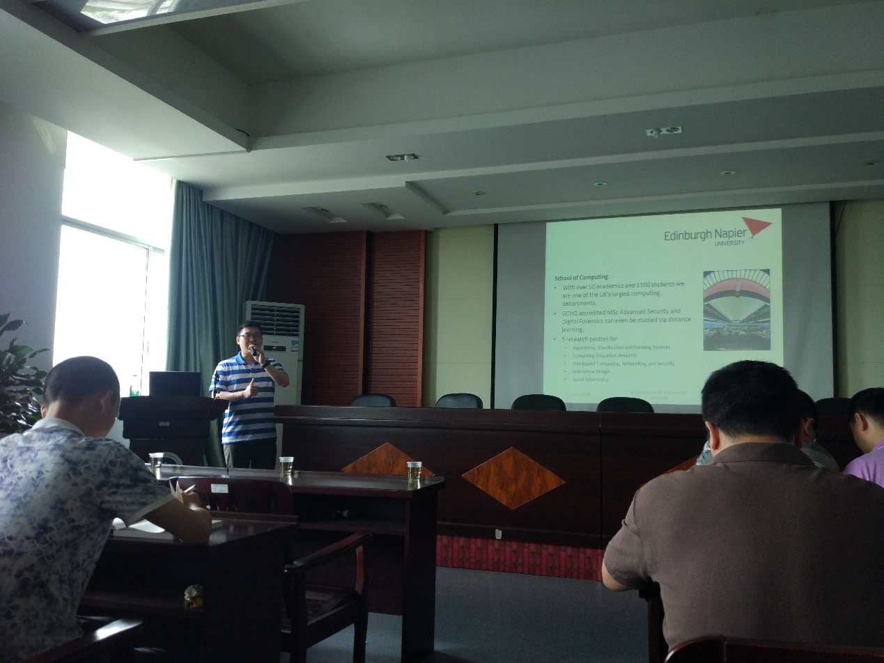 2018年6月22日(星期五)上午10:00,应学院邀请,英国爱丁堡龙比亚大学博士生导师谭志远博士在tapplay官网逸夫楼201会议室做了一场题为 “Network Security: Data Analysis Aspects”的精彩学术报告。本次报告由学院副院长周栋教授主持,学院部分老师、研究生及本科生参加了报告会。